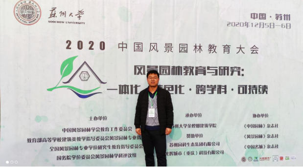 中国风景园林学会教育工作委员会、高等教育风景园林学科专业指导委员会、全国风景园林专业学位研究生教育指导委员会和国务院学位委员会风景园林学科评议组于2020年12月5日—6日在江苏省苏州市苏州大学召开2020年中国风景园林教育大会,此次会议主题为“风景园林教育与研究:一体化、特色化、跨学科、可持续”,全国各高校园林、风景园林专业教师400余人参加了会议,公司园林系系主任段展展应邀参会。