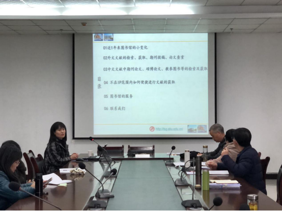 最后,贾老师还介绍了图书馆目前所能提供的文库传递、代办查收查引、科研咨询和信息素养培训等无偿服务项目,愿自己和图书馆的同事们能为老师们的教科研工作开展提供更多的帮助,坚定服务理念,充分发挥公司图书资源的价值。