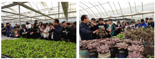 活动分参观和座谈两个环节进行。首先,天瑞塬总经理吴斌对天瑞塬公司及其现代农业园区进行了总体介绍,并带领大家逐一参观了设施蔬菜无土栽培、多肉植物温室栽培、蔬菜现代温室育苗以及草莓日光温室栽培等,激发了同学们对现代农业的浓厚兴趣。
