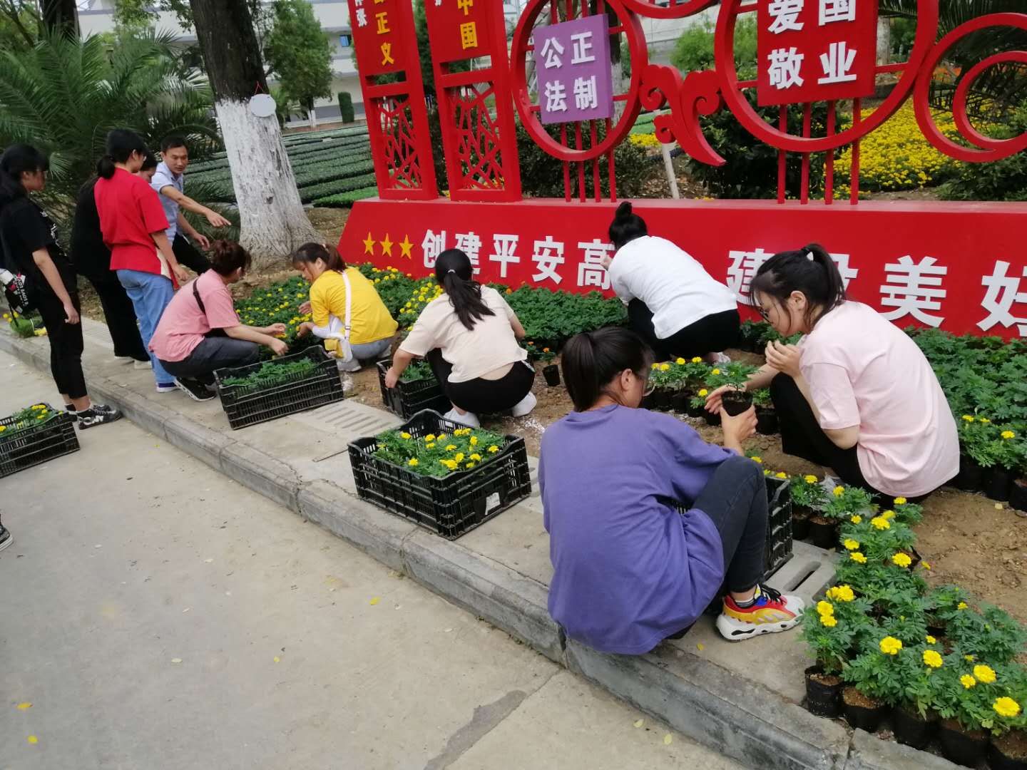 在高新绿化公司,员工系统性地学习了钢架温室内现有各种草本花卉的形态分类识别,了解不同生态环境下花卉的生长发育状况和规律,常见草本花卉的繁殖育苗技术方式、栽培养护管理技术要点,园林植物的病虫害防治技术,基质的配制、消毒杀菌、装钵、移栽;熟悉了观赏植物的换盆、倒盆,更换基质等操作。实习中,同学们勤奋好学、积极投入到企业的生产任务中,参加了月季的嫩枝扦插育苗、龙爪菊的花期调控、三色堇和角堇的栽植育苗、迎“国庆·中秋”双节前的模纹花坛景观布展等活动。