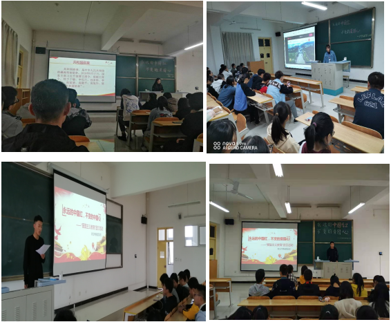各班团支部书记以“七十周年,喜迎华诞”,“走进英雄,献以敬意”,“不忘初心,砥砺前行”三个篇章向团员介绍了新中国成立七十年来的风雨征程,并以袁隆平、屠呦呦等八名共和国勋章获得者的英雄事迹勉励广大团员青年不懈奋斗,争做时代楷模。最后,各团支部观看了《追梦者》、《头条里的青春中国》等几部微视频,回顾了祖国近年的辉煌成就。