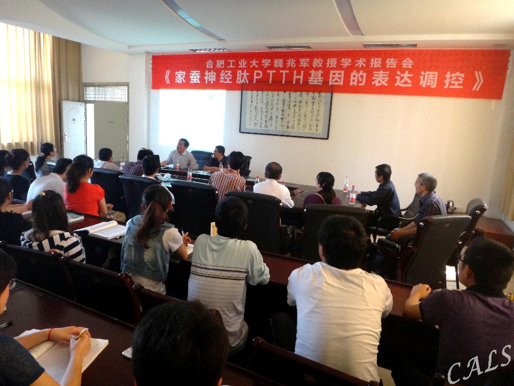 5月29日下午,合肥工业大学黄山学者“特聘教授”、教育部优秀人才、博士生导师魏兆军教授应邀为公司生物科学、农学、食品专业的部分教师和员工作“家蚕神经肽PTTH基因的表达调控”的学术报告。报告会由副经理杨松杰博士主持。
