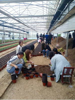 在高新绿化公司,员工参观进一步学习了钢架温室的结构、设施设备及功能,草本花卉的形态识别,了解不同生态环境下花卉的生长发育状况和规律,常见草本花卉的繁殖育苗技术方式、栽培养护管理技术要点、园林植物的病虫害综合防治技术等。