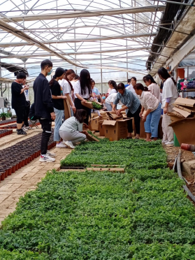 同时,同学们参与公司花卉生产用营养土的配制、园林观赏植物的土肥水管理、月季的嫩枝扦插育苗、大树营养液配制和树体挂袋输液、营养土装盆、穴盘小苗移栽等工作。在指导老师的带领下,同学们参与企业国庆菊大批量的扦插繁育和日常养护管理和生产工作,熟悉了菊花花期调控实用技术。员工们纷纷表示,能为国庆献礼是园林工作者值得引以为傲的一份荣誉。