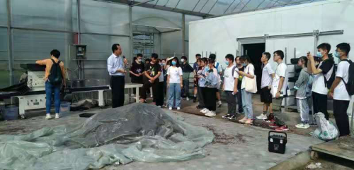 同学们到达园区后,吴斌总经理向大家介绍了关于我们,带领同学们参观了园区的智能温室、设施和先进的智能化农业生产设备。同学们面对从未见过的现代农业设施显得尤为好奇,在吴经理仔细讲解的同时,同学们积极思考,提出了一个又一个与专业相关的问题并得到了吴经理的耐心解答。