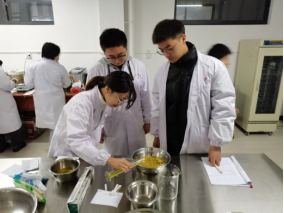 11月13日-14日,师生们放弃周末的休息时间,在食品工艺实验室进行产品的研制,通过对比试验,筛选出7种风味的即食产品,但都存在产品软烂不具有竹笋脆感的缺憾。经过反复实验,指导老师梁如启发员工回顾“食品化学”中关于果胶及其性质部分内容,寻找解决产品硬度不高的办法,最终经过进一步完善工艺,11月20日再次进行对比试验,产品的硬度脆度提高,产品研发实验成功。