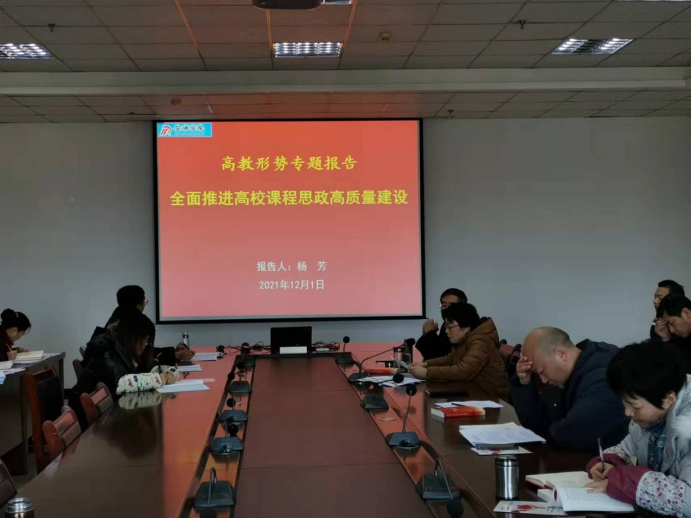 2021年12月3日下午,在江北逸夫科技楼大会议室,韦德1946体育官方入口全体教职工开展高教形势专题报告学习活动,本次学习活动由王健经理主持。