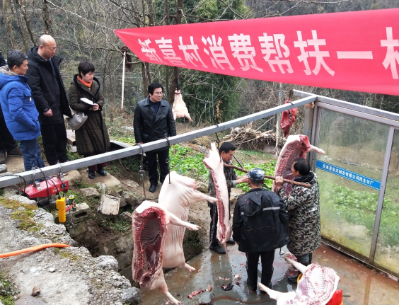 座谈会后,兵分两路,一路到猕猴桃园区进行现场指导;一路来到帮扶结对户,开展消费帮扶活动,购买了该户自养的猪肉350余斤。