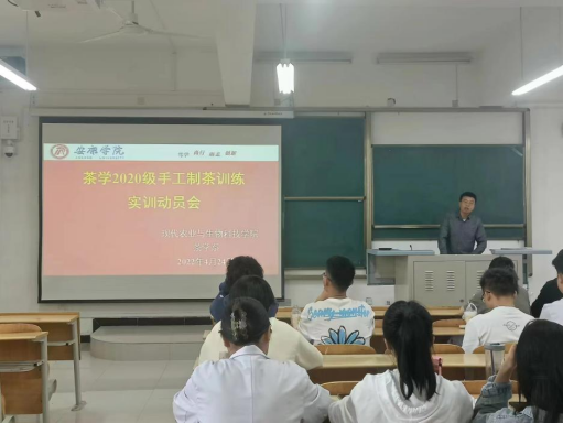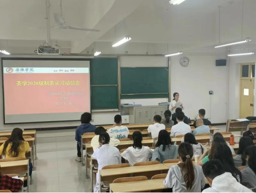 4月24日上午,韦德1946体育官方入口韦德1946体育官方入口2019级、2020级茶学专业员工在专业教师李冬花、齐玉岗、吴冲带领下,于1223教室开展制茶实习暨手工制茶训练实习动员会。