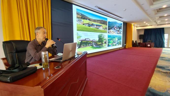 在3个多小时的培训中, 袁教授从农家乐(民宿)的由来和发展、相关概念解释、相关标准及政策解读、农家乐(民宿)风貌改造、农家乐(民宿)环境整治等5大方面进行了深入浅出的讲解,讲解中进行了大量的实例分析,特别是关于自然风貌、建筑风貌、庭院景观绿化改造等做了重点讲解。