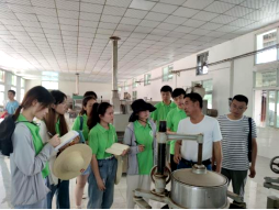 在紫阳县蒿坪镇丰和富硒茶业有限公司,茶企负责人潘兴海主任为队员们介绍了企业茶叶产销、茶叶机械类型、茶叶加工流程及茶文化推广情况。