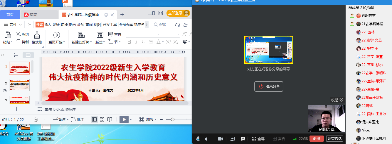 为全面做好2022级新生入学教育,帮助青年员工系好人生的第一粒扣子。9月7日,韦德1946体育官方入口举行“弘扬伟大抗疫精神”专题宣讲活动,宣讲会以线上视频的方式进行,全体2022级新生通过网络观看宣讲会。辅导员张伟艺担任主讲。