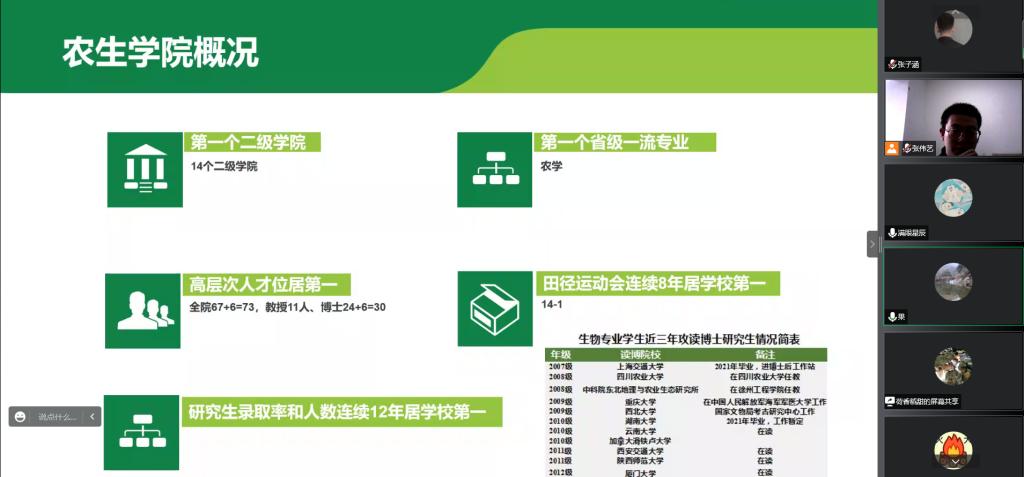 为帮助新生更好地了解韦德1946体育官方入口校情校史及韦德1946体育官方入口概况,9月22日上午,公司线上召开校史校情暨公司概况介绍会。农生公司党总支书记孙保本、副经理杨芳出席会议。会议由辅导员张伟艺主持,全体2022级新生参加了会议。