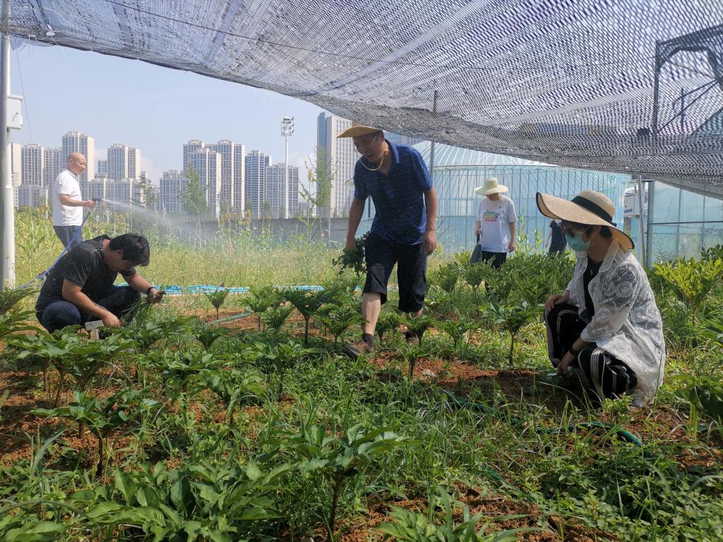 开班仪式结束后,全体党员、党务工作者、科级干部克服40度的高温酷暑,到校内实训基地进行了浇水、除草、作物采收生产劳动