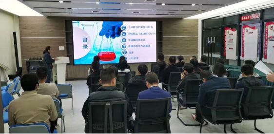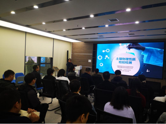 在技术培训会上,张博士为公司员工讲解了土壤样品的采集和制备、土壤机械组成、土壤田间持水量、土壤水稳性大团聚体、容重、土粒密度等土壤物理性质的测定方法及测定过程中的常见问题。随后,张博士详细解答了员工提出的相关技术问题。在室外进行了环刀取土样的现场教学工作。
