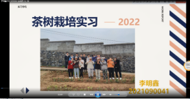 实习结束后,同学们结合实习目的、实习内容、实习过程、茶园管理和实习收获等方面进行实习总结。受疫情影响,实习汇报改为线上展示。汇报中,同学们将实习中的实践操作与理论知识相结合,对实习实践活动进行总结,为本次实习画上了完满的句号。