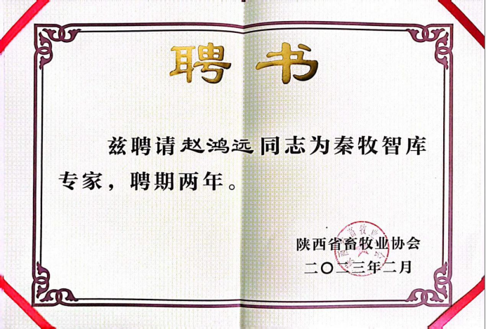 2023年2月25-26日,“陕西省畜牧业协会三届二次理事会、协会成立十周年庆典、秦牧智库成立大会暨秦牧智库2023新春报告会”在西安隆重召开,公司教师赵鸿远博士作为秦牧智库专家代表应邀参加本次大会。