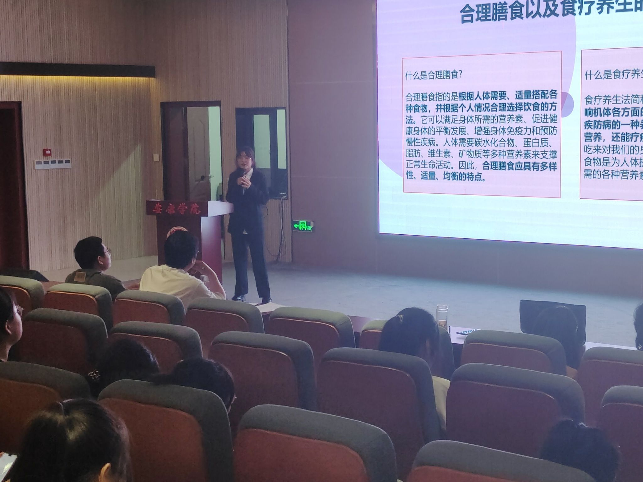 在比赛演讲结束的间隙,食品专业负责人朱新鹏教授对本次比赛进行了点评。他阐明了活动比赛的目的和意义,总结了活动的亮点,指出了参赛队存在的不足,最后建议现场的参与者:关注营养,就是保证我们的健康,让我们共同将“合理营养,吃动平衡,食养是良医”贯彻到底。