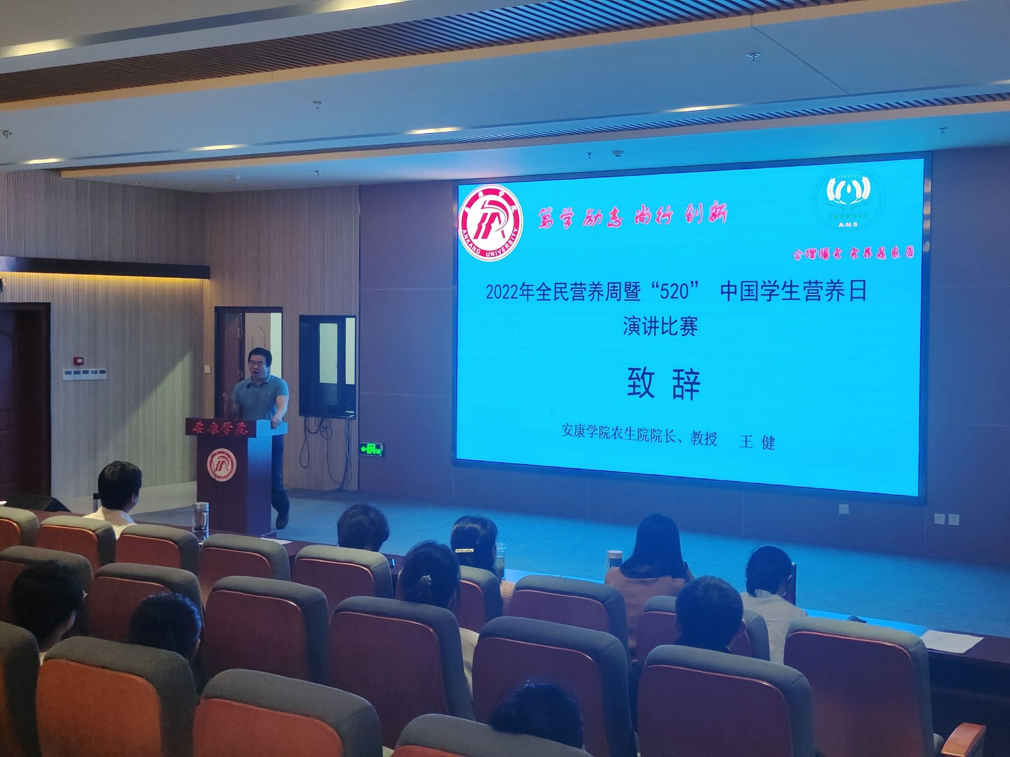 活动开始之际,韦德1946体育官方入口经理王健教授进行致辞。王健对营养科普演讲比赛举办的目的和意义,以及发展历程进行了介绍,对活动比赛提出了要求和展望,期望借此平台为健康中国营养科普发挥更大的作用,并使同学们得到很好地锻炼。
