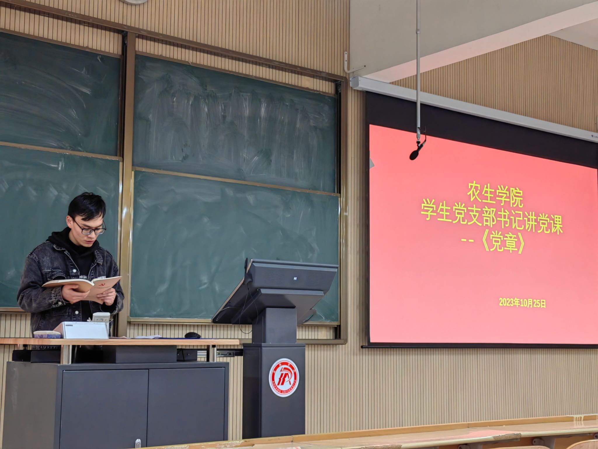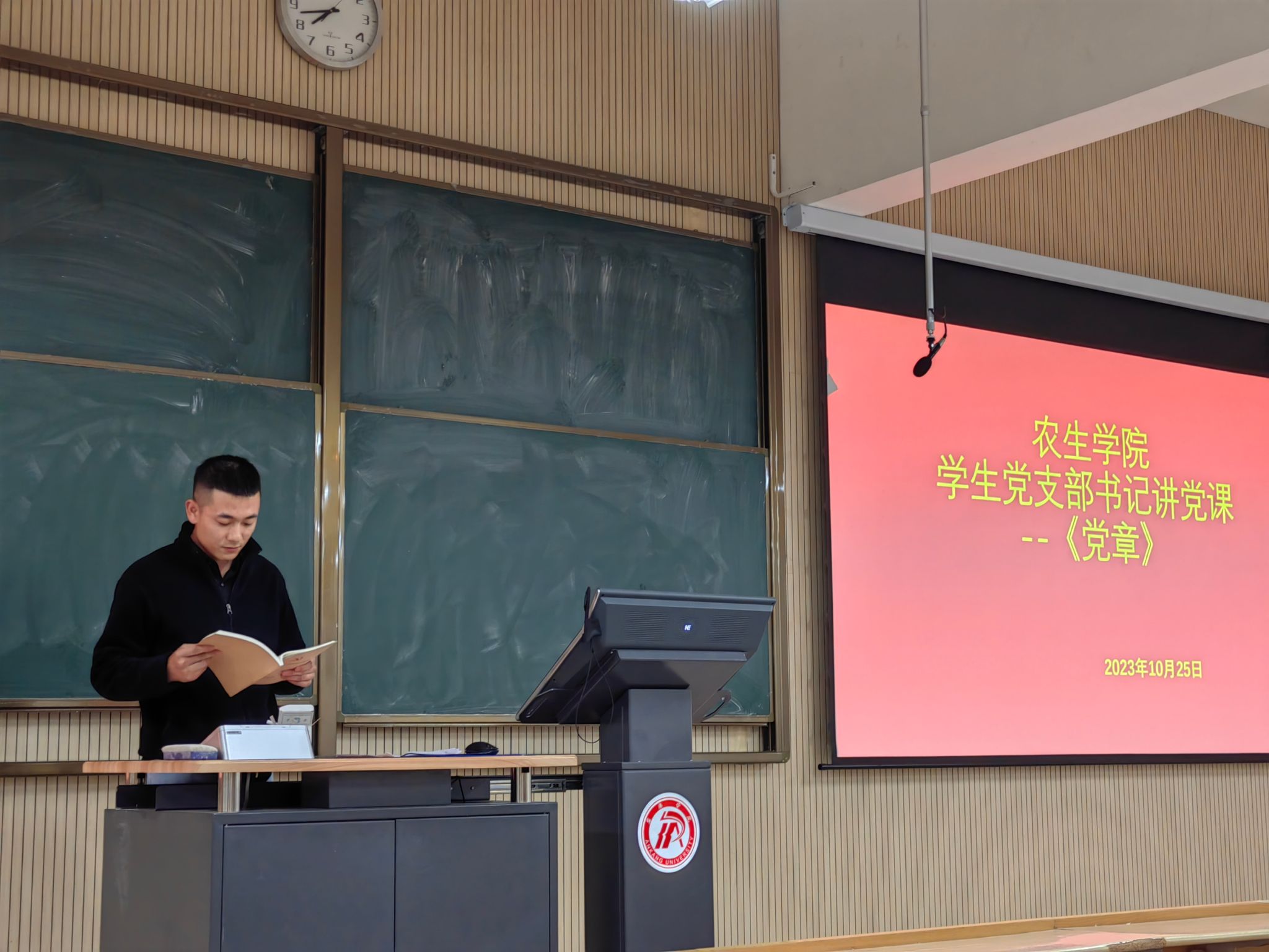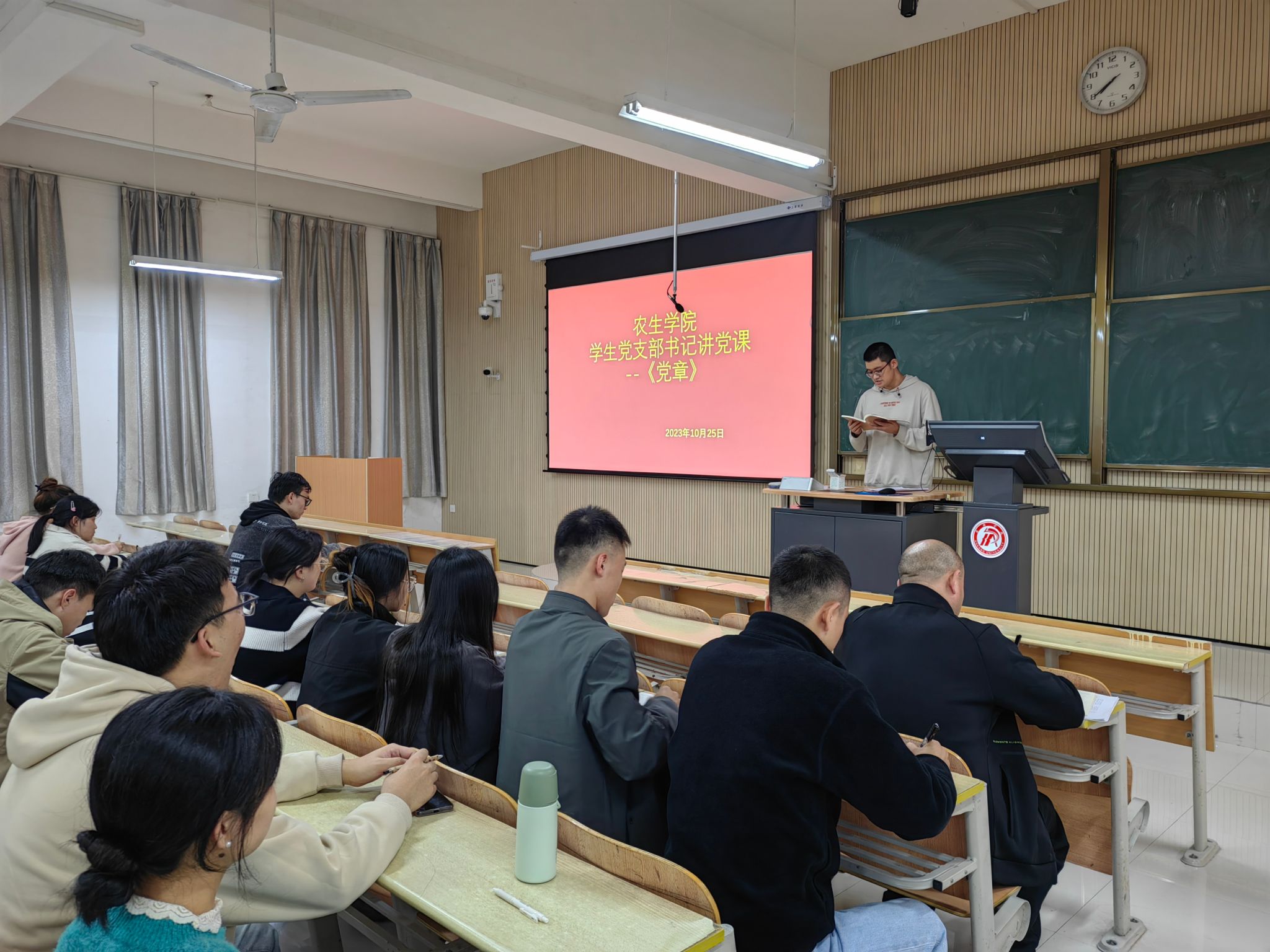 为持续推进学习贯彻习近平新时代中国特色社会主义思想主题教育深入开展,强化员工党员党性修养和理论武装,10月25日晚,公司在江北校区1号教学楼1203室召开员工党支部党员大会,党总支书记孙保本及20余名员工党员参加,支部书记张心愿讲党课并主持大会。