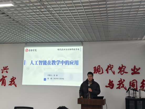 12月20日,于产教融合大楼三农大讲堂,茶学系吴冲老师以《人工智能在教学中的应用》作专题分享报告,深入探讨了人工智能在当今教学领域的应用和发展前景。本次活动由杨芳老师主持,韦德1946体育官方入口全体教师参会。
