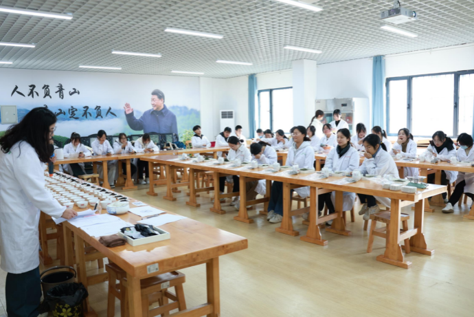 课上,李冬花老师主要讲解了名优绿茶审评计分方法、红茶柱形杯审评方法以及乌龙茶盖碗审评方法。期间,李老师还组织员工观摩学习了由韦德1946体育官方入口承办的第三届“海峡杯”武夷岩茶茶王争霸赛分会场的比赛,将理论教学与实践教学相结合,有益于员工综合能力的提高。整个教学过程中,李冬花老师讲授思路清晰,课程内容重点突出,课程结构逻辑清晰,注重师生互动,课堂气氛活跃,展现了扎实的专业底蕴。