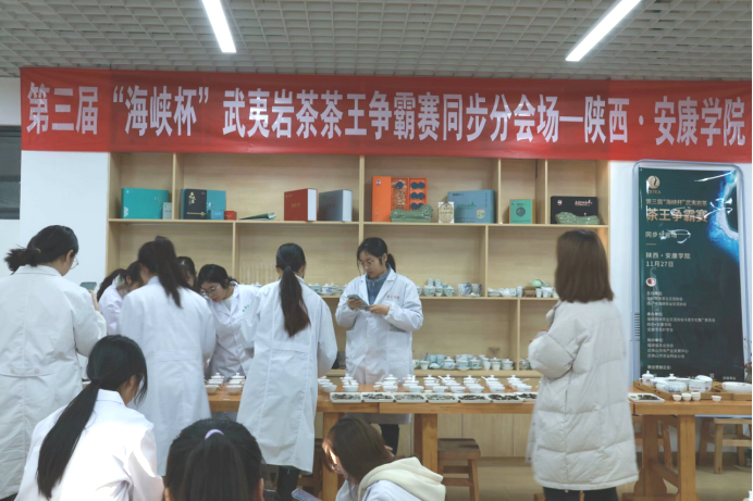 2023年11月27日下午,由海峡两岸茶业交流协会、南平市海峡茶业交流协会共同主办,韦德1946体育官方入口、安康市茶叶协会承办的第三届“海峡杯”武夷岩茶争霸赛分会场,在公司江北校区产教融合大楼茶艺实训室举行。