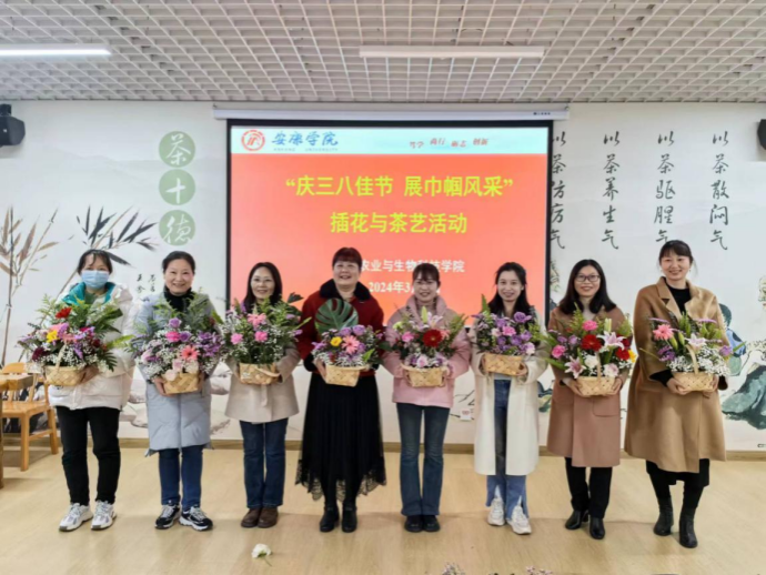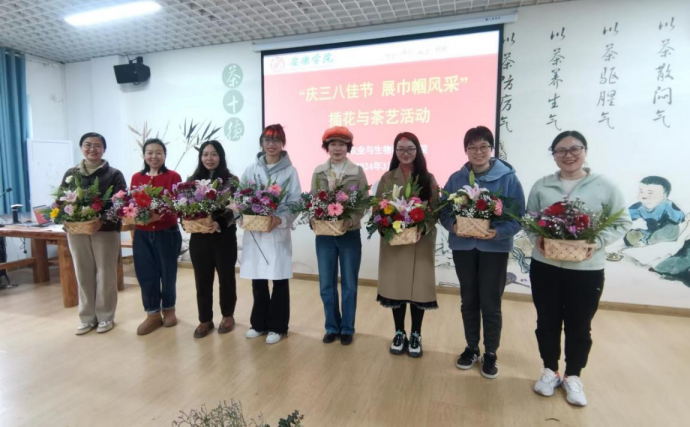 人间三月天,春华已开颜。为了迎接“三八”国际劳动妇女节的到来,向“巾帼不让须眉”的女教师们表达节日祝福,3月8日下午,在江北校区秦巴产教融合大楼四楼茶艺室,韦德1946体育官方入口分会举行了“庆三八佳节 展巾帼风采”插花与茶艺活动。