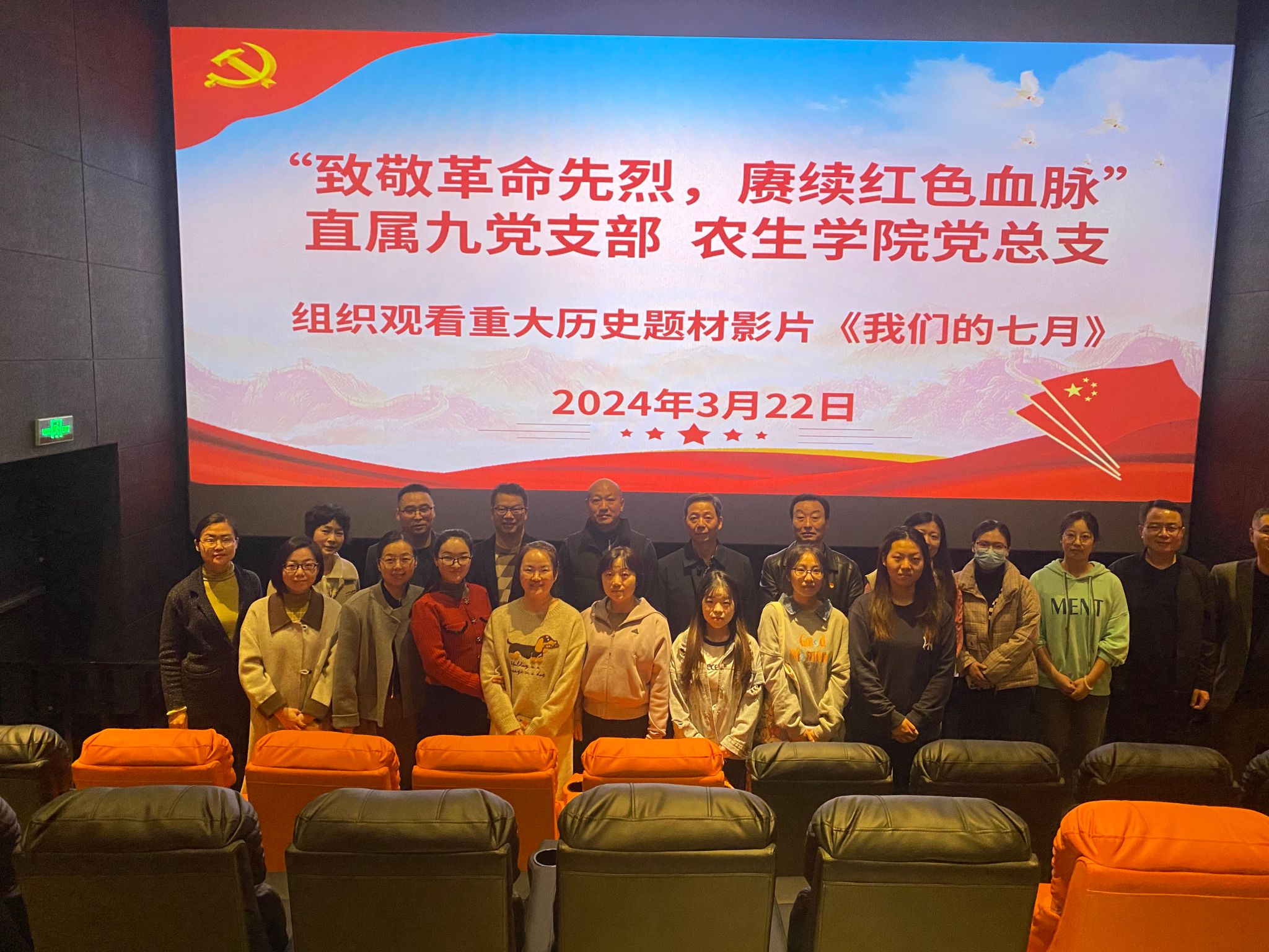 为深入学习贯彻习近平新时代中国特色社会主义思想和党的二十大精神,推动党史学习教育走深走实,进一步践行“为党育人、为国育才”初心使命,弘扬爱国主义精神。3月22日下午,直属九党支部、农生公司党总支师生共同观看了党史题材影片《我们的七月》。