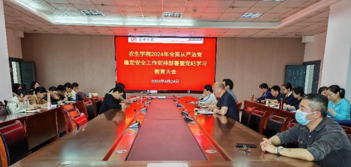 4月24日下午,公司在逸夫楼9楼大会议室召开2024年全面从严治党、稳定安全工作安排部署暨党纪学习教育大会。此次大会由农生公司党总支书记孙保本主持,全体教职工参会。