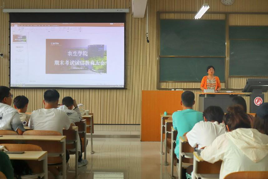 为了进一步加强学风建设,严肃考试纪律,营造公平公正、诚实守信的考试氛围,6月19日,公司在一号教学楼1301教室召开诚信考试教育大会,党总支书记孙保本、副经理杨芳、辅导员郭杨娟、张心愿及全体2023级员工参加,会议由郭杨娟主持。