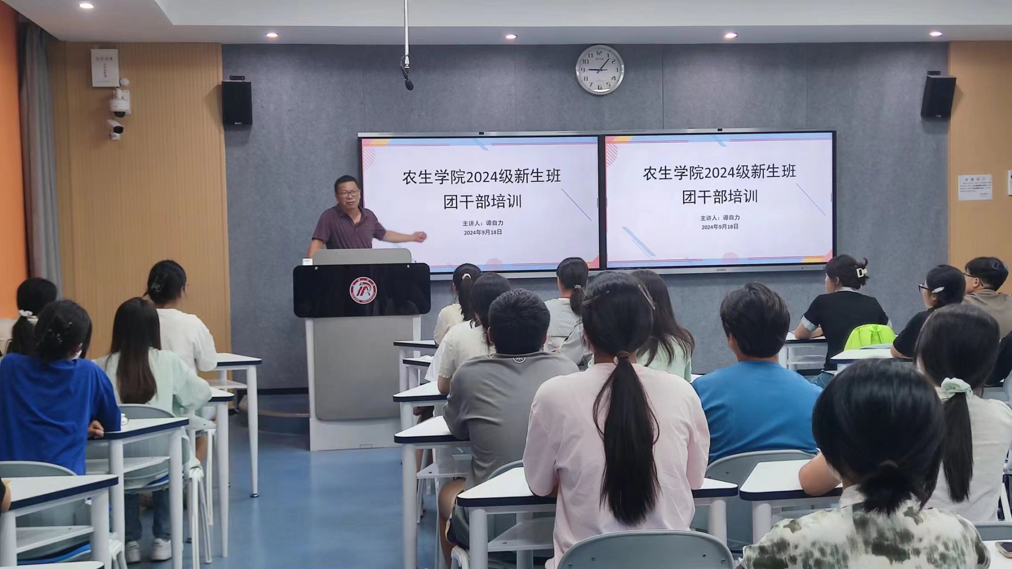 为促进新生员工班团干部尽快转变角色,提升管理服务效能,扎实做好班风、学风建设。9月18日晚,韦德1946体育官方入口在1217教室举行2024级新生班团干部培训,35名班团委干部接受了培训,培训由学工办主任谭自力担任主讲。