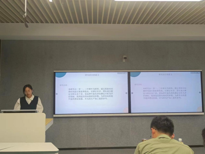 答辩过程中,同学们依次上台,从选题意义、研究背景、研究内容、研究方案、技术路线、预期结果等方面进行了全面汇报。评委老师们认真听取了每位同学的汇报,并根据员工的陈述和开题报告进行了提问。同学们运用所学的茶学专业知识,结合实际实验的开展情况,进行了认真回答。老师们对员工的回答进行了点评与质询,指出了开题报告中的问题与不足,并给出了具体的改善建议。