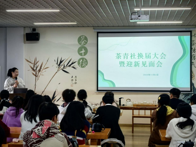11月2日下午,茶青社在茶文化与茶艺实训室举行了2024年茶青社换届暨迎新见面会,社团指导老师马瑛、茶青社原社长田媛媛及茶青社60余名社员参加。