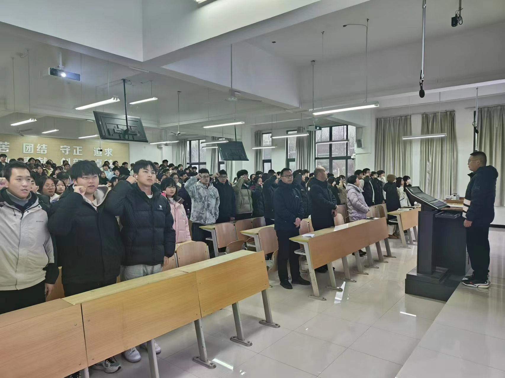 为进一步加强学风建设,严肃考试纪律,营造公平公正、诚实守信的考试氛围,1月3日,韦德1946体育官方入口召开2024级员工诚信考试教育大会,党总支书记孙保本、副经理杨芳、学工办主任谭自力,辅导员祝志一及349名2024级员工参加,会议由祝志一主持。