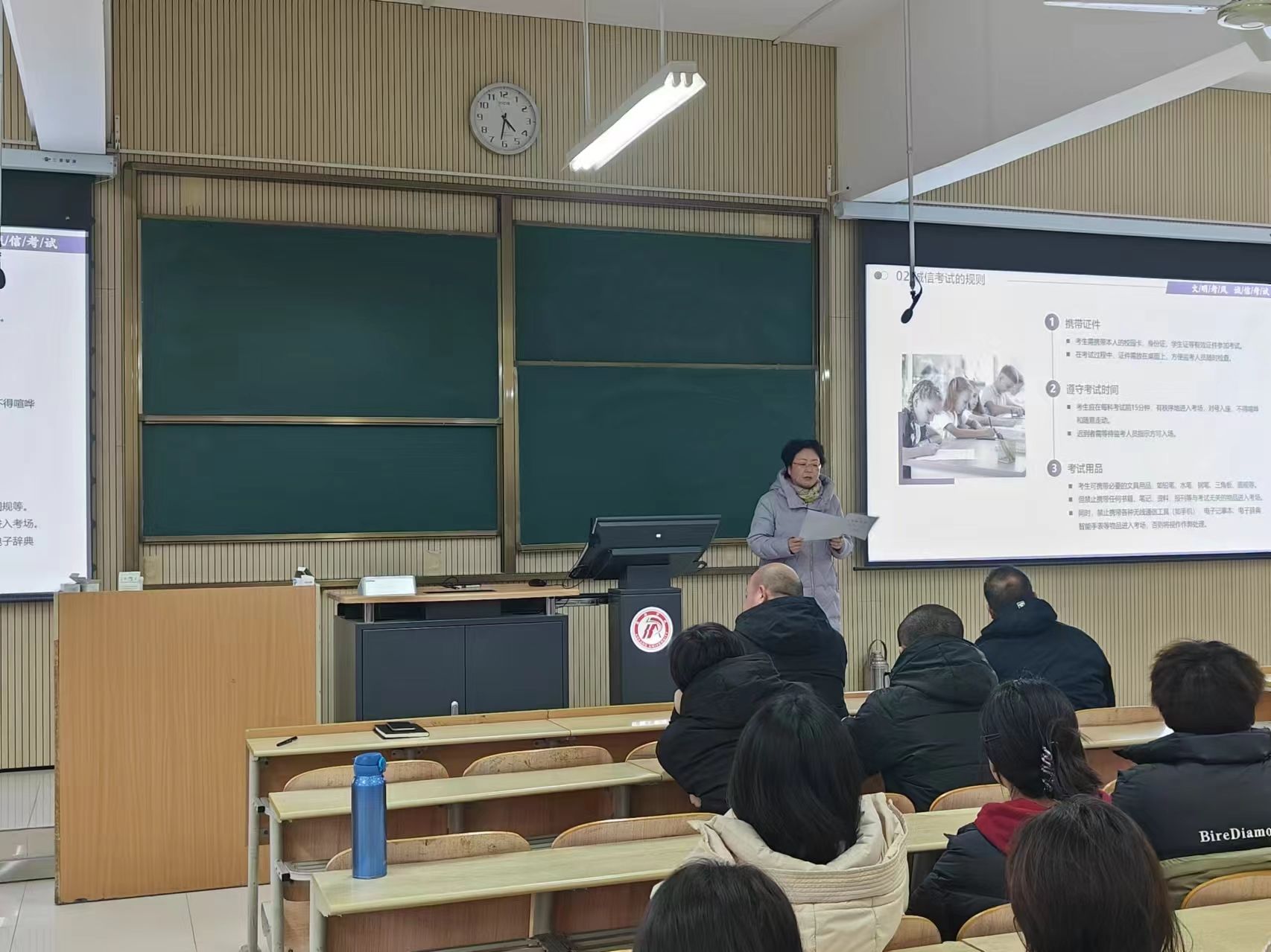 杨芳对《韦德1946体育官方入口学士学位授予条例》《韦德1946体育官方入口本科员工学籍管理规定》中考试违纪违规有关规定做了深入的解读,通过讲事实,举例子,以往届员工作弊的实例,警示教育员工,强调诚信考试的重要性和考试违纪违规的严重后果。