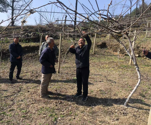 每到一处果园,一行人首先对果园耐心巡查,仔细查看当前猕猴桃冬季养护管理情况,并与猕猴桃园主进行现场交流讨论,针对猕猴桃园整形修剪和病虫害防治进行现场指导,受到了果农的好评,为当地猕猴桃产业发展提供技术支撑。