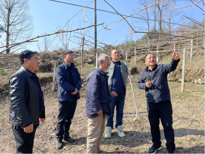 在坝河镇武装部部长王俊峰、副镇长邓力、办公室主任柯尊灏和村干部等同志陪同下,沈大刚一行先后来到寺姑村猕猴桃大户、示范基地了解猕猴桃种植情况。