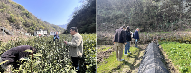 随后在白河歌风春燕有限公司、白河县五峰生态农业开发有限公司、兰茗山茶业有限公司及陕西舞龙尖茶业股份有限公司等企业茶园,系统调研了不同海拔、土壤条件下的茶园管理技术及春季茶树生长态势,为后续品种优化和栽培技术改进提供支持。