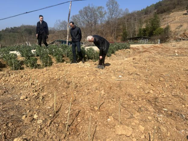 彭云武深入两村桑园现场,深入了解了桑园规划与布局,并结合当地气候和土壤条件提出了适合的桑树品种,并强调在选择桑树时,要注重抗病性和适应性,要考虑合理设计种植密度,优化行距和株距,确保桑树通风透光。