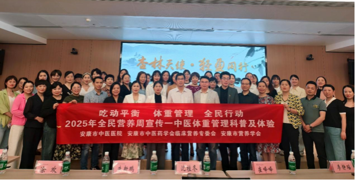 4月25日,为迎接5.12护士节和全民营养周,安康市中医医院圆满举办了“杏林天使 轻盈同行——中医体重管理科普暨沉浸式体验”活动。活动是践行“健康中国”战略、弘扬中医药文化,融合知识科普、文化体验与健康关怀的生动实践。参加活动有安康市中医医公司党委书记杨彬、经理胡章学、副经理沈桂冬、安康市营养学会副理事长兼秘书长崔峰峰,以及医院全院医护人员、患者及家属百余人。公司教授朱新鹏作为食品营养专家应邀参加并主持相关活动。