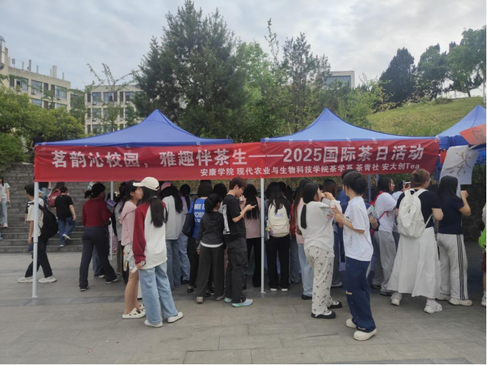 饮茶区:茶学员工现场冲泡安康富硒绿茶、红茶、铁观音、茉莉花茶等,师生们细品慢饮,领略不同茶类的独特风味;