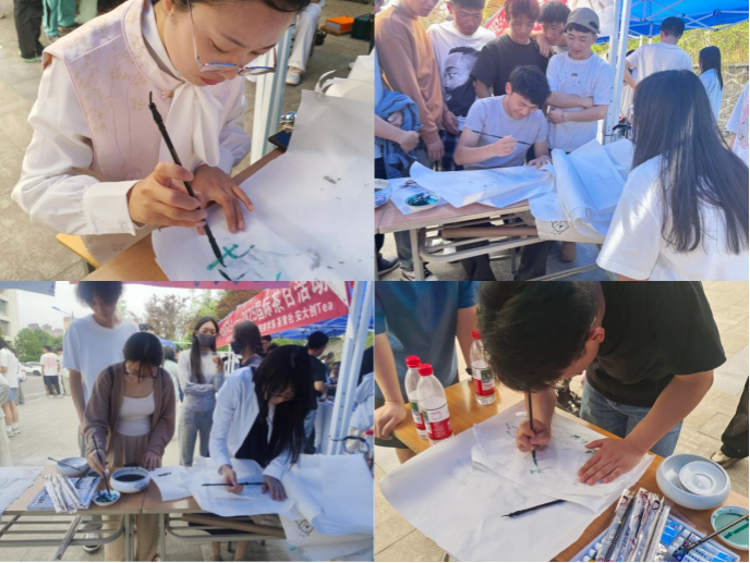 当茶汤与艺术相遇,将碰撞出别样的创意火花。在茶渍画体验区,师生们以茶叶、茶渣为颜料,在宣纸上挥洒灵感。有的点缀出灵动的花鸟,有的将茶渍与书法结合,创作出独具韵味的作品。活动现场茶香与墨香交织,艺术与生活相融。