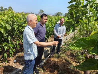 在实地查看桑园管理情况时,团队成员建议蚕农在使用农药时要充分考虑农药残留对家蚕的影响,尽量使用残留期短、对家蚕无危害的农药;针对部分桑树因树龄过高而发生退化的现象,建议及时淘汰退化的桑树并进行补植。