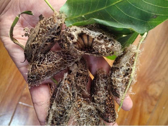 6月10日,彭云武研究员、张笙源老师赴汉滨区关家镇收集栗蚕种质,获得鳞翅目大蚕蛾科昆虫栗蚕蛹20余粒。同时,张笙源还向蚕农介绍了栗蚕的食性及结茧时间,为后续栗蚕收集工作做好充分准备,以期进一步扩大栗蚕资源的收集规模。