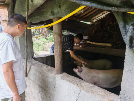 2025年7月22日,公司三区人才周天骄博士在叶坪镇农业农村服务中心主任朱勉峰的陪同下赴椒沟村对当地猪场养殖技术进行现场技术指导。周天骄走访了村内所有养猪的养殖户,对猪饲料配制、猪病防控与治疗以及生物安全管理等技术问题进行现场沟通与交流。