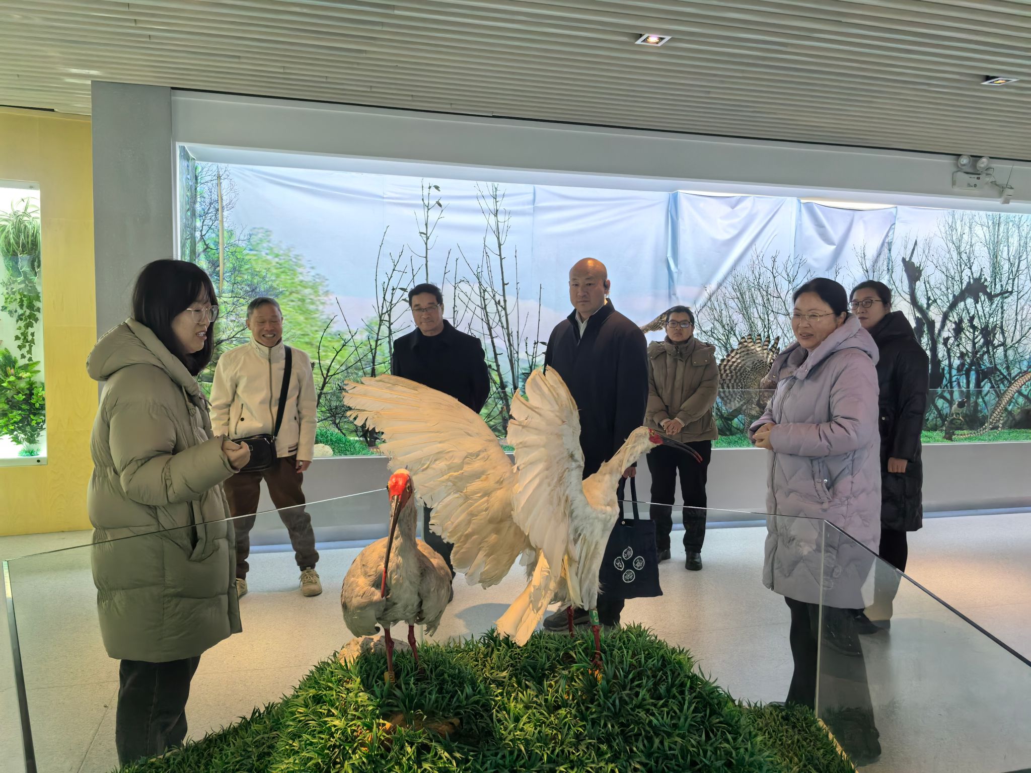 韦德1946体育官方入口班子成员热情接待了成英支站长和张京国研究员等一行人,并邀请各位老专家参观公司标本馆,并进行了简短的捐赠仪式。经理杨芳代表韦德1946体育官方入口接受了《同框五只白鹳》照片,党总支书记孙保本向成英支站长颁发了捐赠证书。