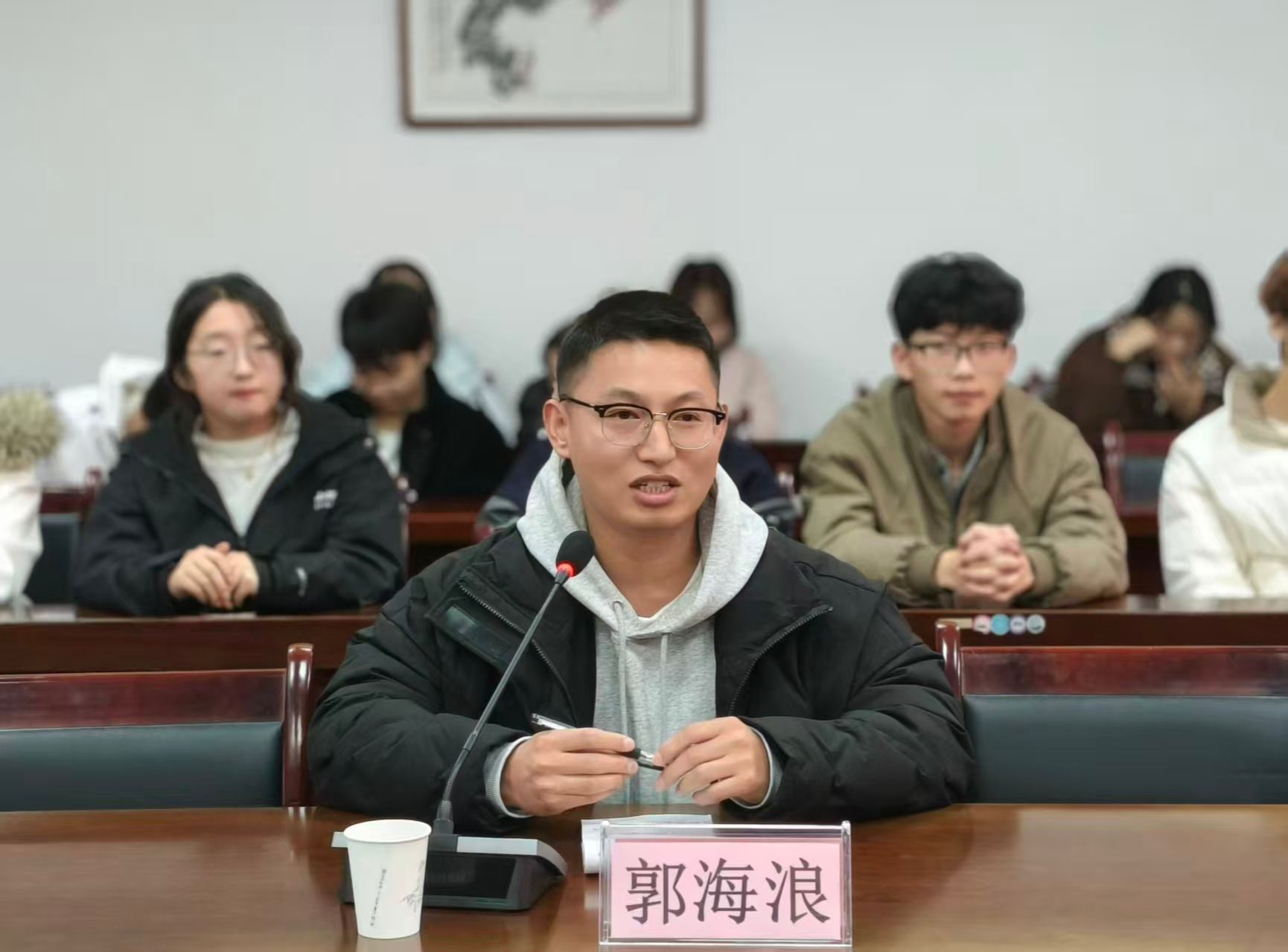 四位员工依次分享奋斗经历。袁康回顾了五年军旅生涯对意志的锤炼,以及担任石泉县后柳镇石川村第一书记期间坚守初心、扎根一线、为民谋发展的经历。李九伟、殷越阅、郭海浪,结合各自成长轨迹与职场感悟,分享了宝贵的人生经验和学习心得,一致认为大学时光弥足珍贵,为在场师生提供了生动的经验借鉴,员工们也为公司未来发展积极建言献策。