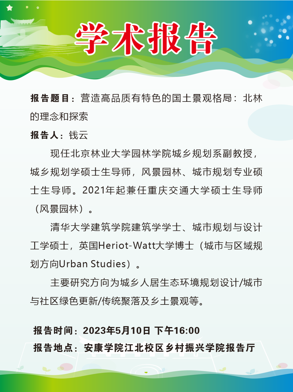 学术报告:营造高品质有特色的国土景观格局:北林的理念和探索