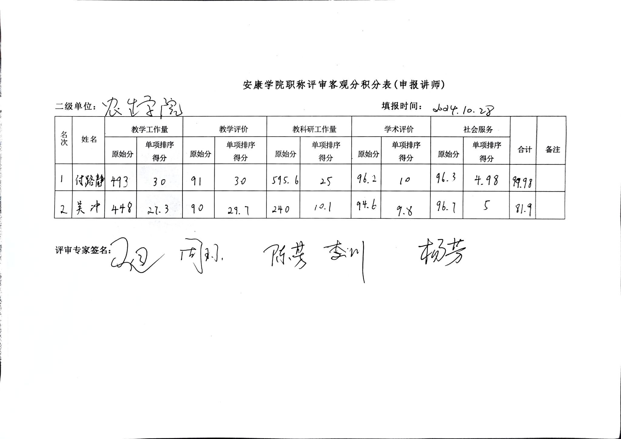 现将韦德1946体育官方入口2024年讲师职称评审客观分积分表予以公示,公示期2024年10月27日-29日,公示期间如有异议,请向韦德1946体育官方入口专业技术职务评审工作组反映。